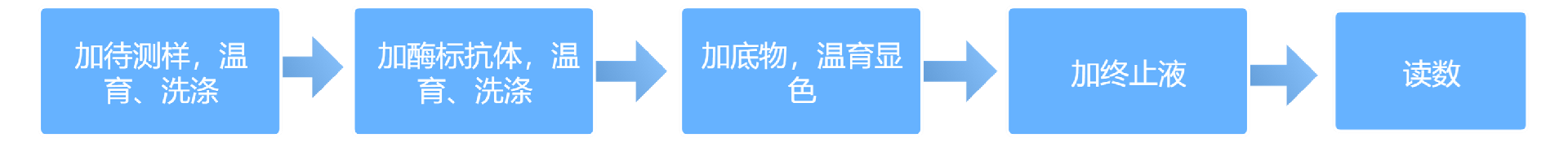 采用抗原与抗体的特异反应将待测物与酶连接,然后通过酶与底物产生颜色反应,用于定量测定。测定的对象可以是抗体也可以是抗原。在这种测定方法中有3种必要的试剂:①固相的抗原或抗体(免疫吸附剂)②酶标记的抗原或抗体(标记物)③酶作用的底物(显色剂)测量时,抗原(抗体)先结合在固相载体上,但仍保留其免疫活性,然后加一种抗体(抗原)与酶结合成的偶联物(标记物),此偶联物仍保留其原免疫活性与酶活性,当偶联物与固相载体上的抗原(抗体)反应结合后,再加上酶的相应底物,即起催化水解或氧化还原反应而呈颜色。其所生成的颜色深浅与欲测的抗原(抗体)含量成正比。这种有色产物可用肉眼、光学显微镜、电子显微镜观察,也可以用分光光度计(酶标仪)加以测定。其方法简单,方便迅速,特异性强。