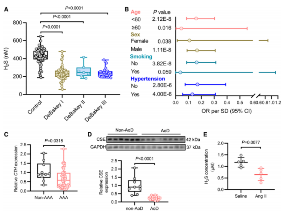 1. CSE/H2S系统在主动脉瘤及夹层患者及主动脉瘤及夹层小鼠内皮中的功能障碍